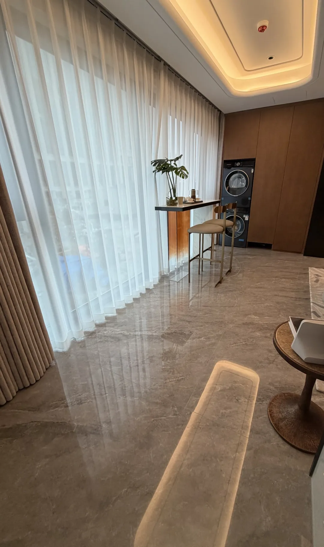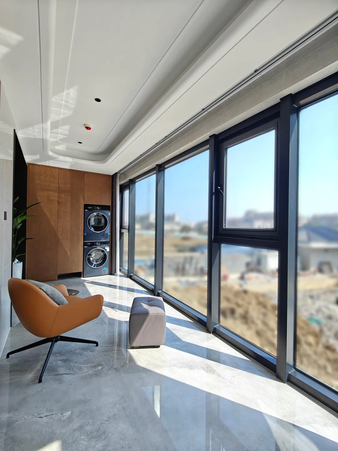 更重要的是,這超乎常規的進深,讓光線得以更深入地浸潤室內每個角落,模糊了室內外的邊界,將居住的尺度感推向極致。在這里,陽臺不再只是晾曬的方寸之地,而是安放生活志趣的詩意空間