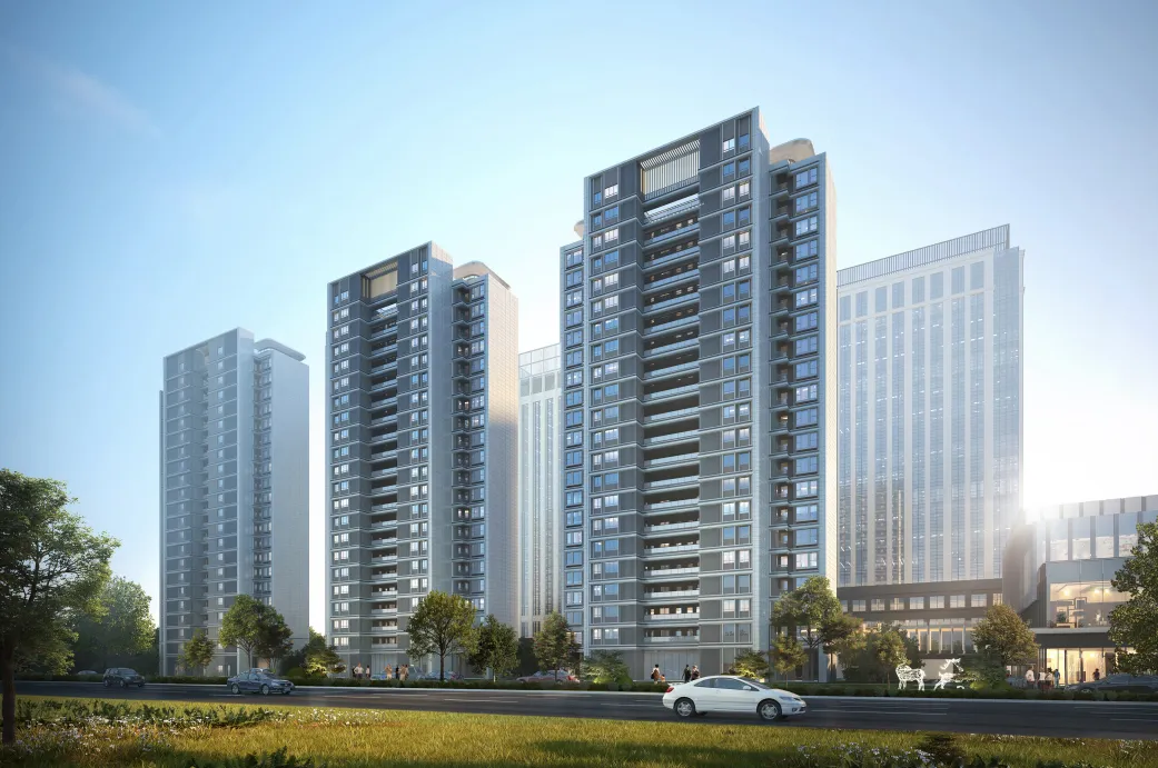 在這里,每一棟建筑都是獨立的風景坐標。無遮擋的橫向排布,讓陽光得以毫無保留地傾瀉而入,讓視野得以穿透樓宇的桎梏。清晨的第一縷晨曦,黃昏的最后一抹余暉,都被這一字展開的建筑格局慷慨收納。
